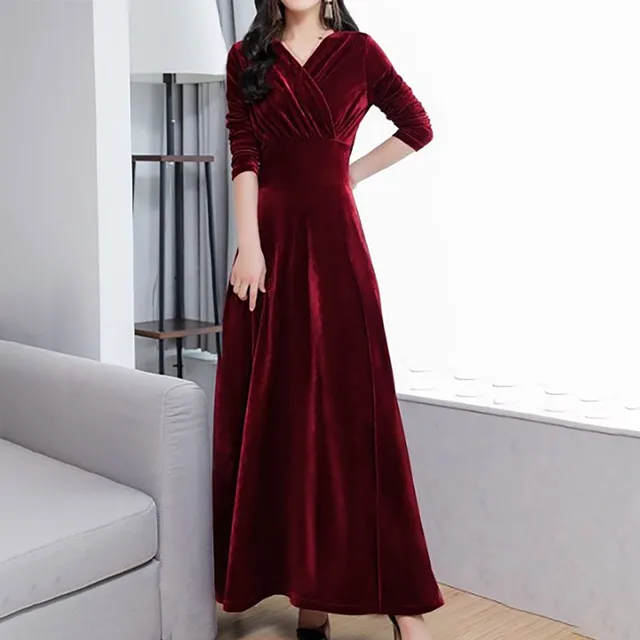 2024 Autumn Winter Velvet Evening Dress Elegant...