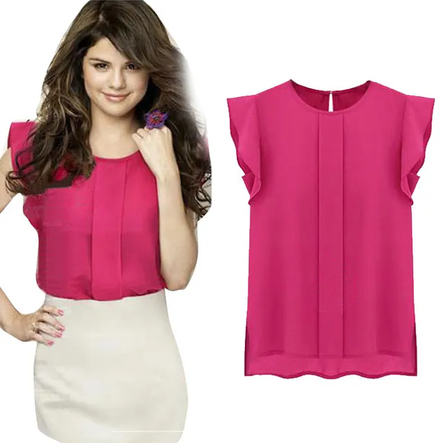 Women V Neck Chiffon Blouse Short Sleeve Shirt