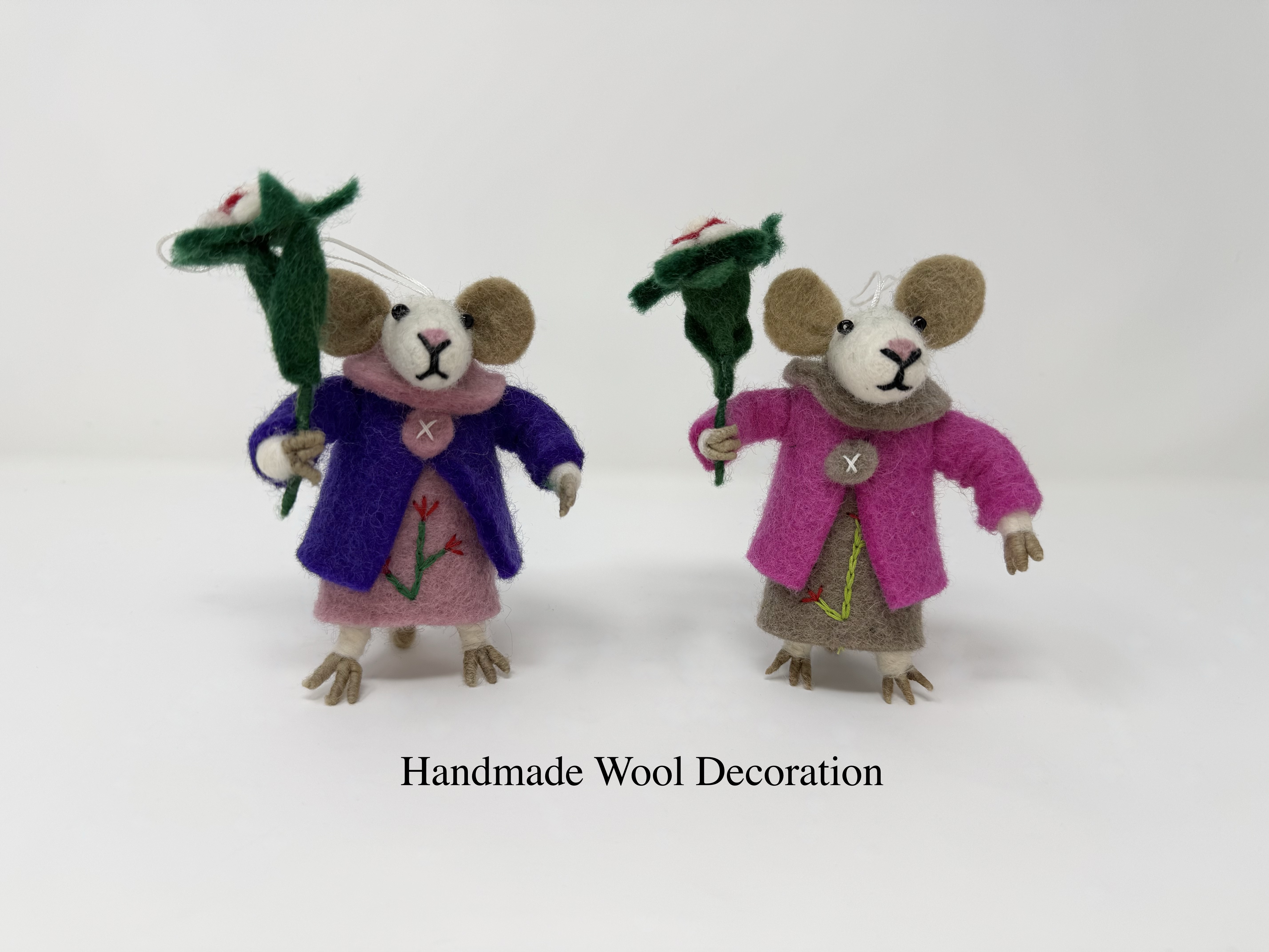 Handmade Wool Mouse with Flower Decoration – Standing or Hanging