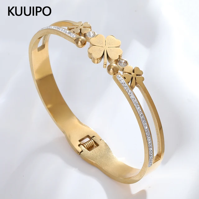 Fashion Rhinestone Flower Stainless Steel Bangl...
